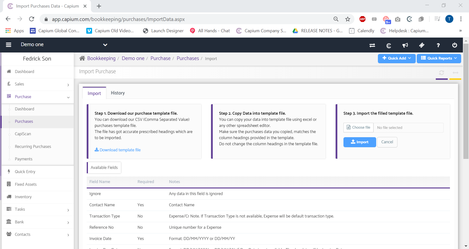 Navigation - Bookkeeping >> Select Client >> Purchase >> Purchases >> Import