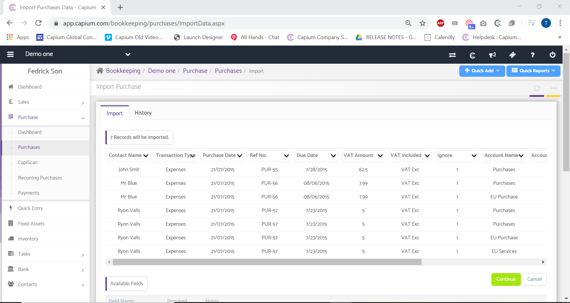 Once there, click the green Import button as displayed below and you will be redirected to the Purchase Import page.