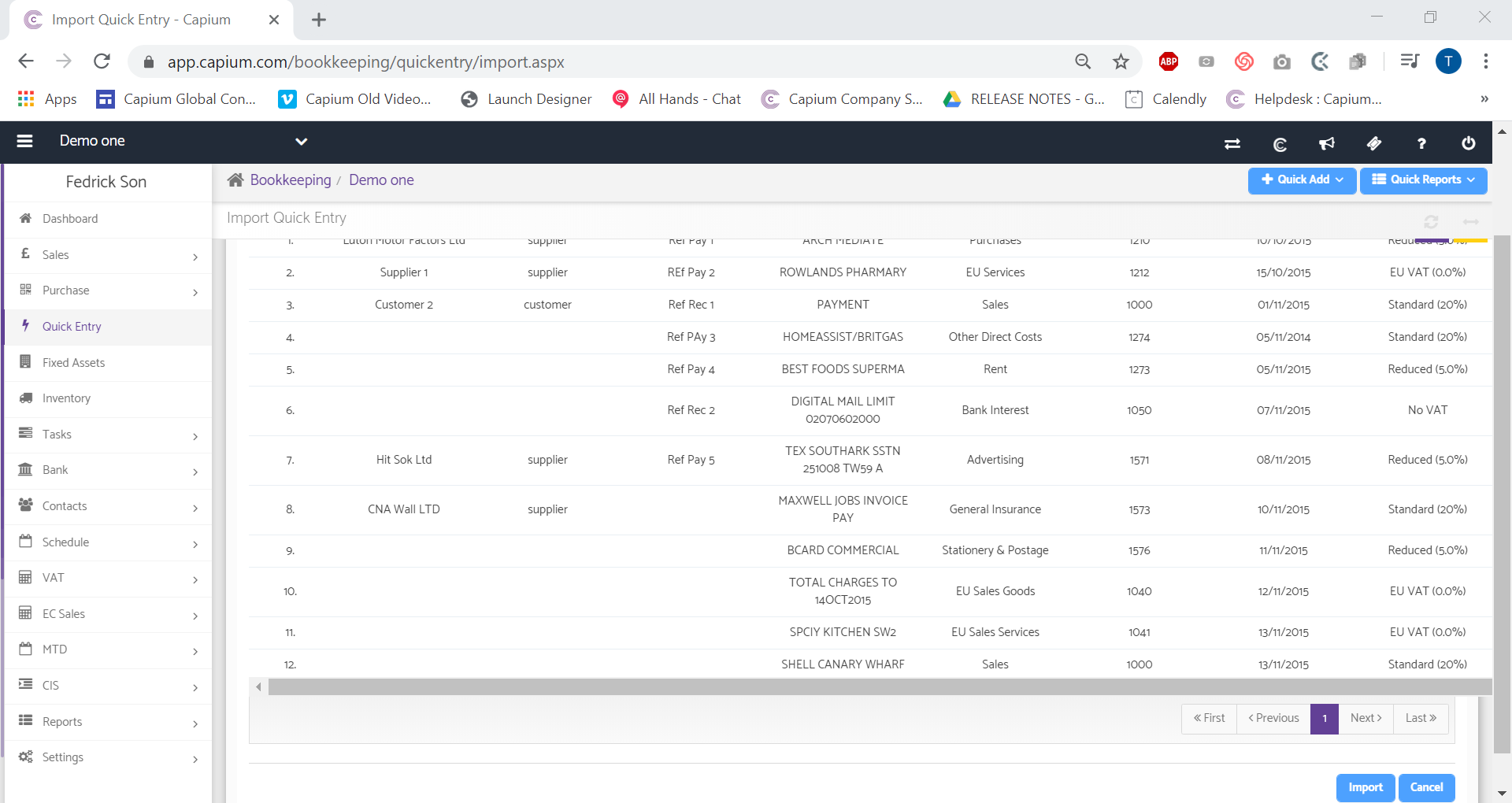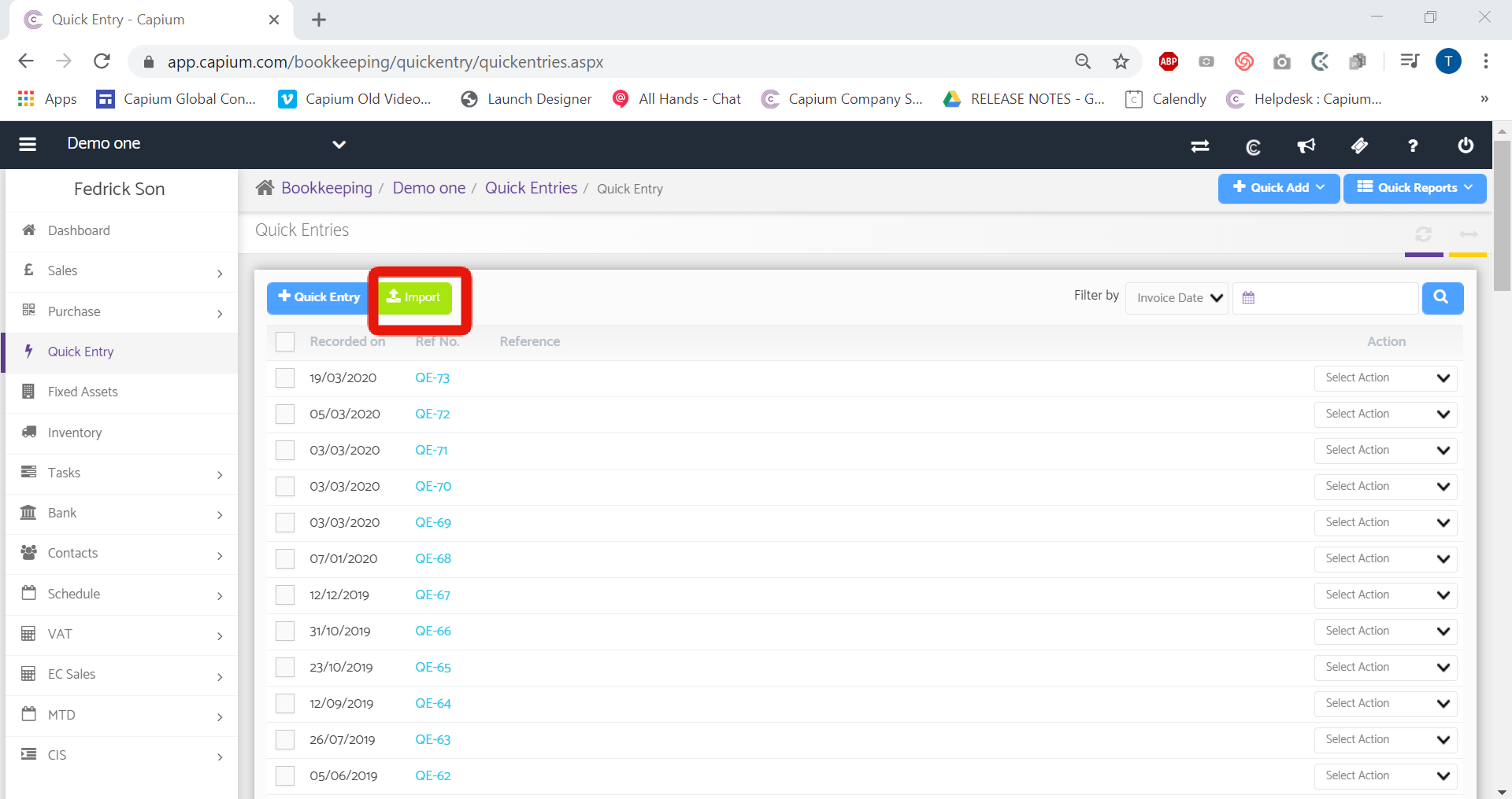 Navigation - Bookkeeping >> Client Dashboard > Quick Entry >> Import