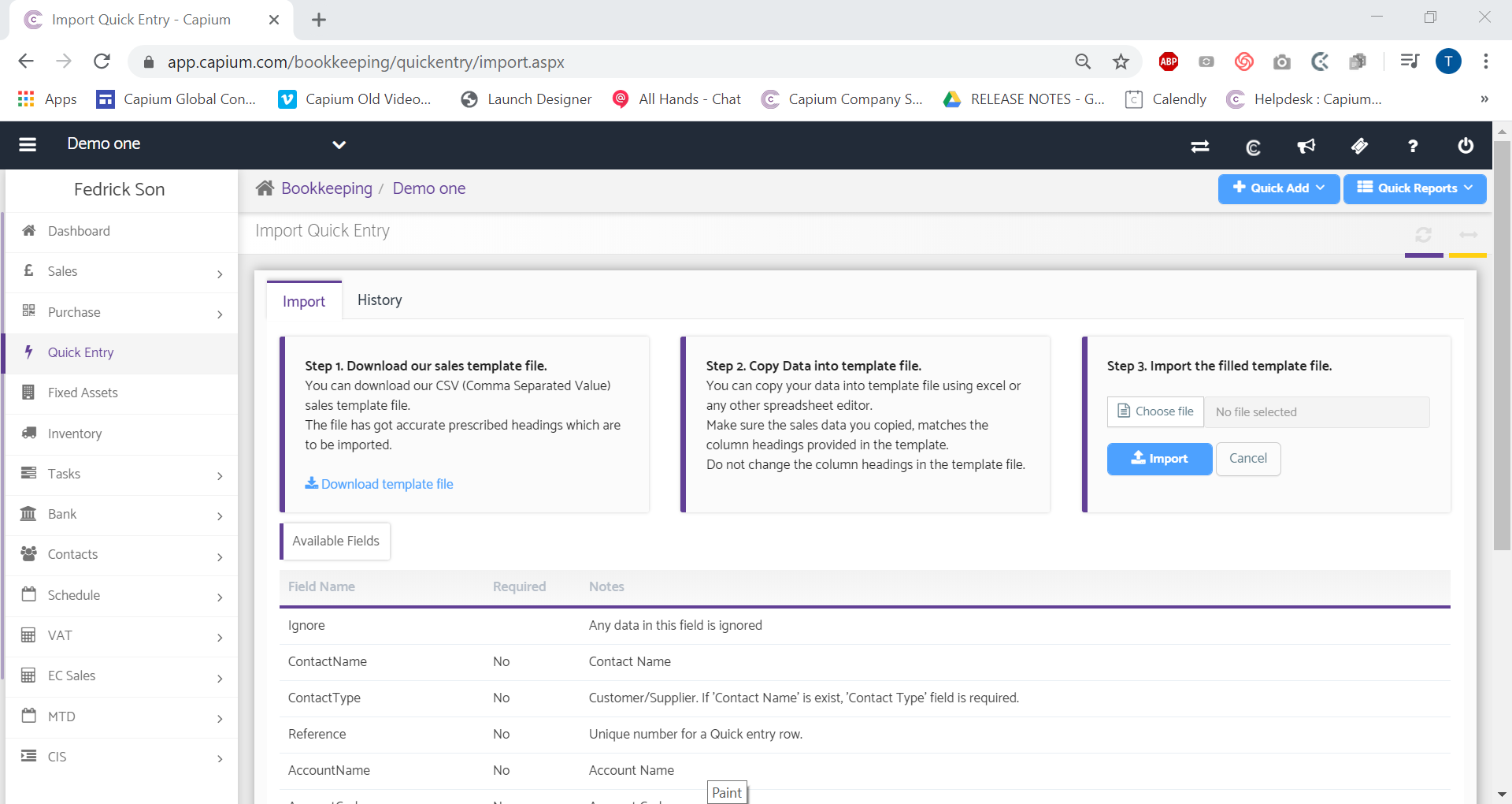 Once you click on 'Import' you will be directed to the Quick Entry import screen - there you will need to follow the guidance provided on the left panel of the page;