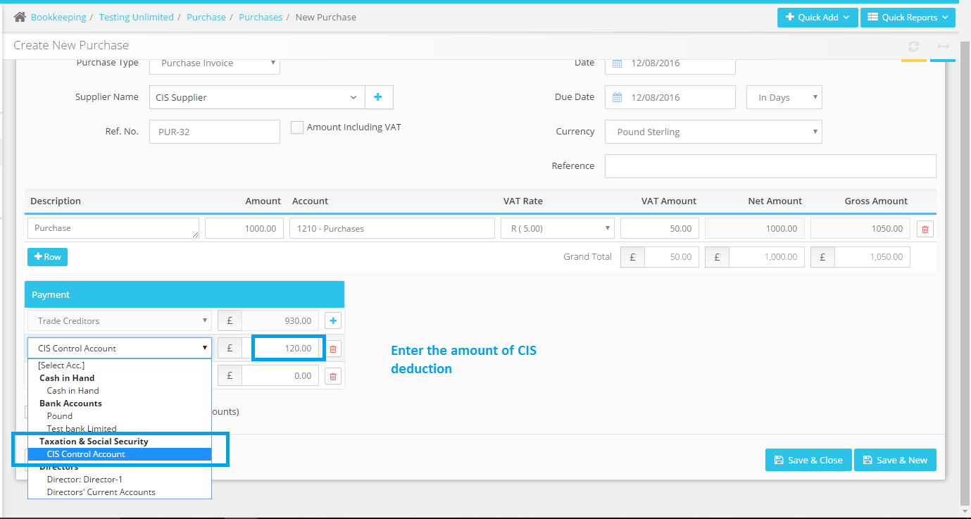 You may deduct the CIS amount while creating the invoice itself by selecting "CIS Control Account" from the action drop down available under payment section.