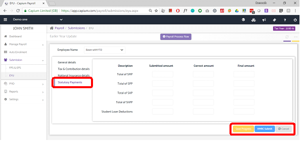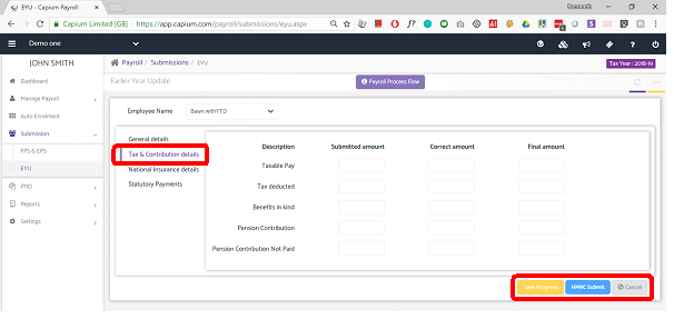 Enter the Submitted amount from the previous year and the correct amount to update HMRC. You can then save or directly submit to HMRC.