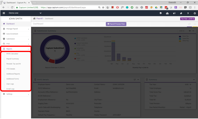This tab shows the summary of Tax and National Insurance Contributions and it also shows the Cost of Payroll. Export options are similar to other Reports.