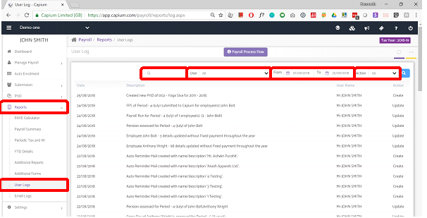 In this User logs section, you may maintain the track of the actions and changes whatever you made in payroll.