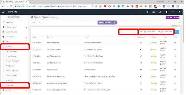 In this User logs section, you may find all the emails list which you have sent to your employees (i.e. Payslips, Pension Letters) etc.