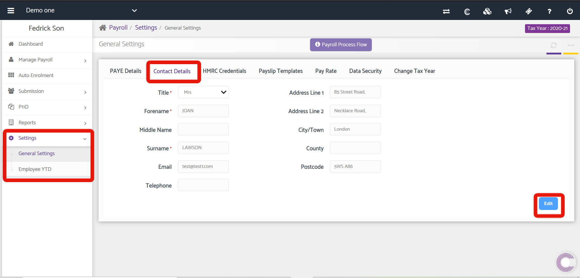 It lets you edit the details regarding HMRC office no., PAYE reference, Accounts office Reference etc.