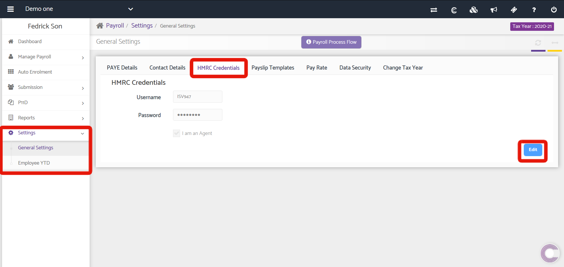 The HMRC credentials have to be mentioned in order to submit FPS and EPS to HMRC if agent credentials are used then kindly tick on the “I am an Agent” tick box.