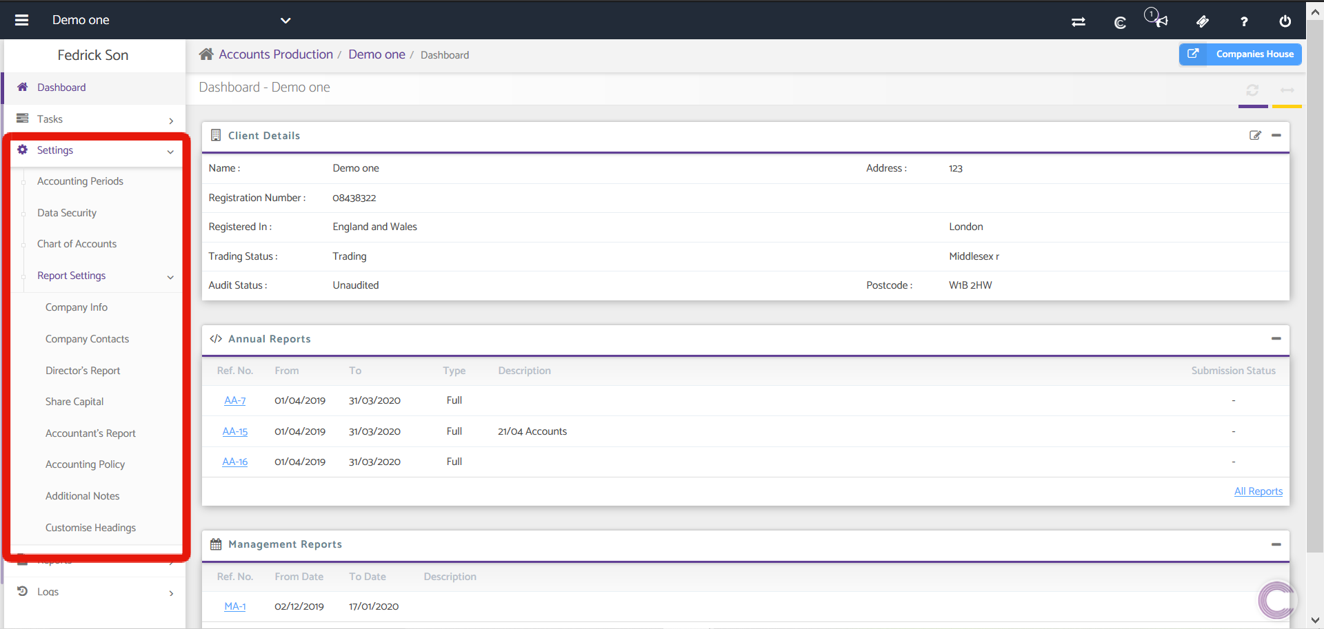 This section gives the information about the reporting part of the company. It has different subsections which are discussed in detail below. The subsections covered are;