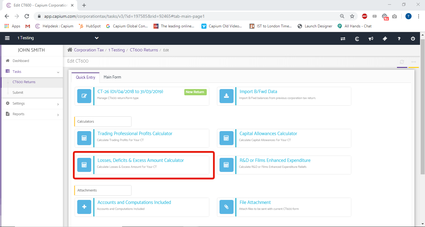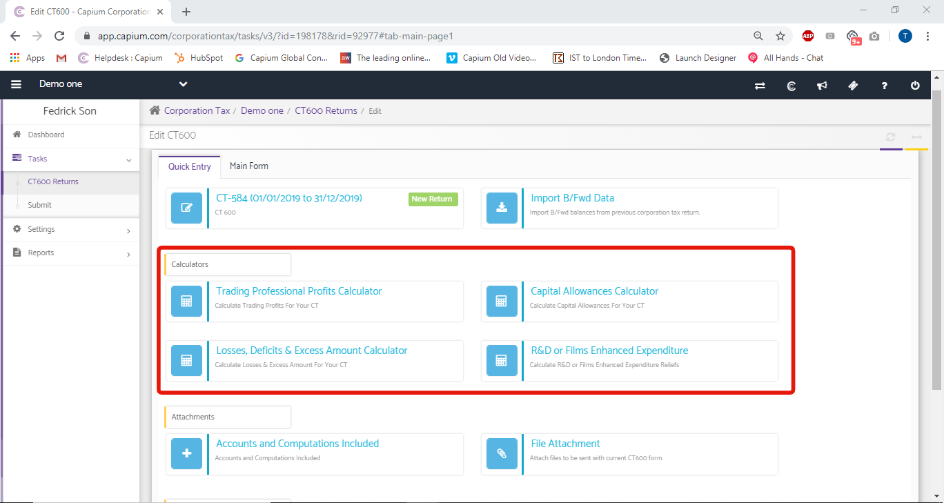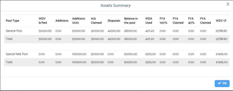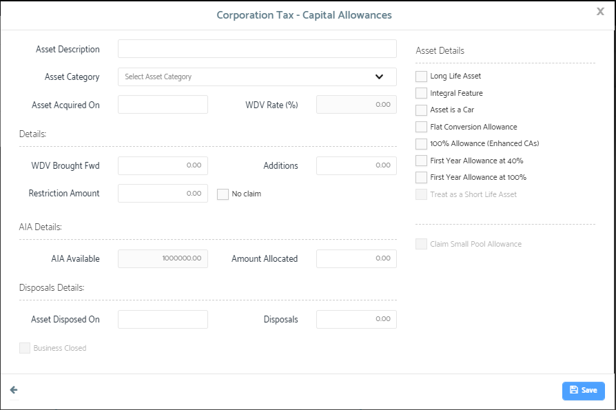 The details of capital allowance can be added from here or from the main page of the calculation from ‘Capital Allowance Calculator’.