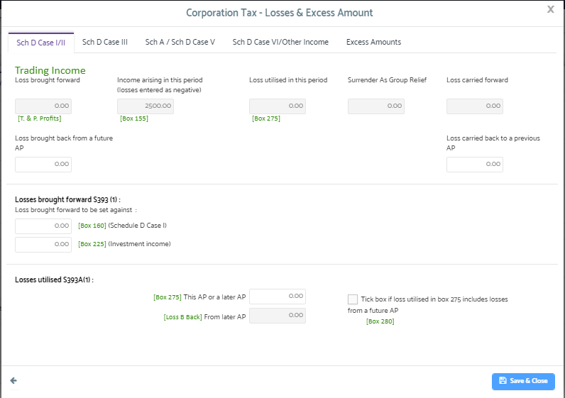 1st part shows the trading loss whose details automatically come from the Annual Account Report so imported.