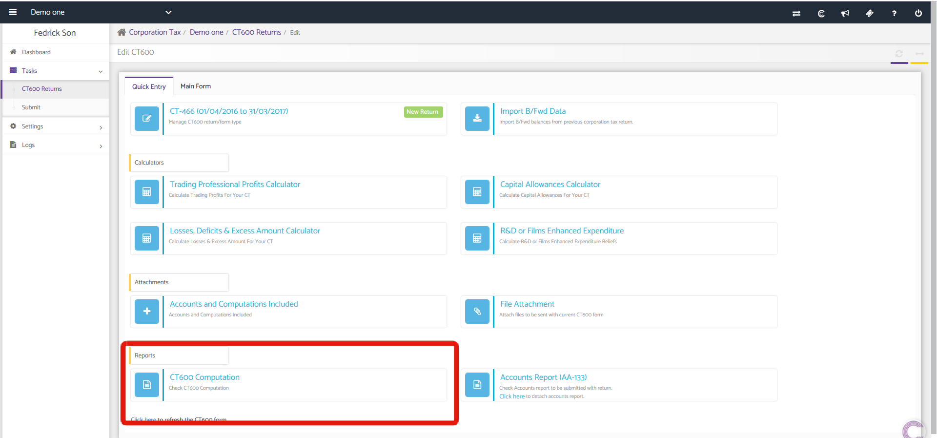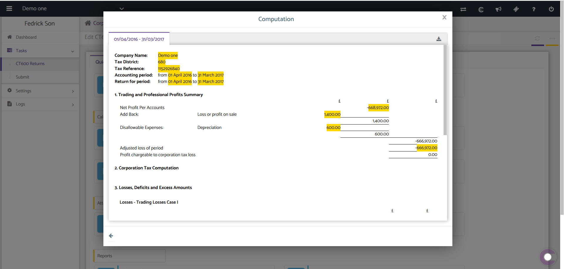 This computation will be as an attachment to CT600 Form submitted to HMRC.