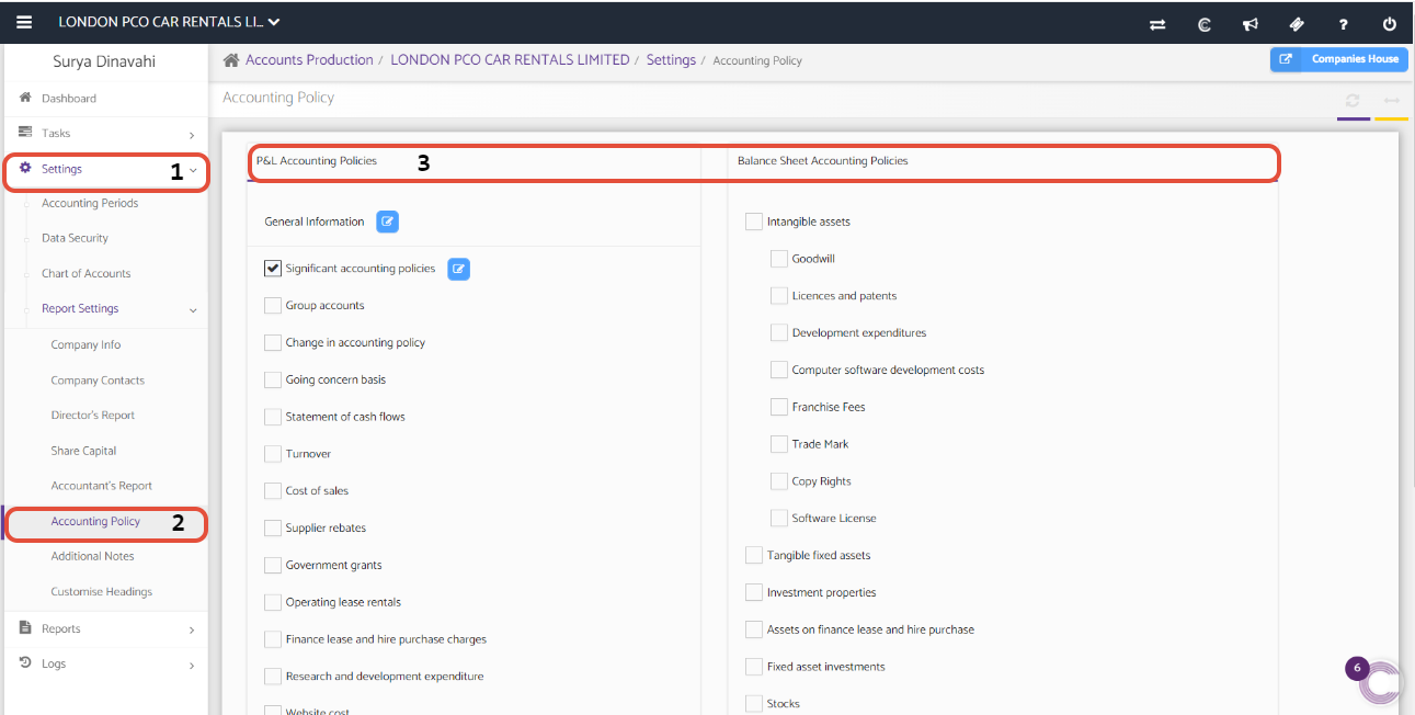 Navigation: Accounts Production >> Select Client >> Settings >> Report Settings >> Accounting Policy