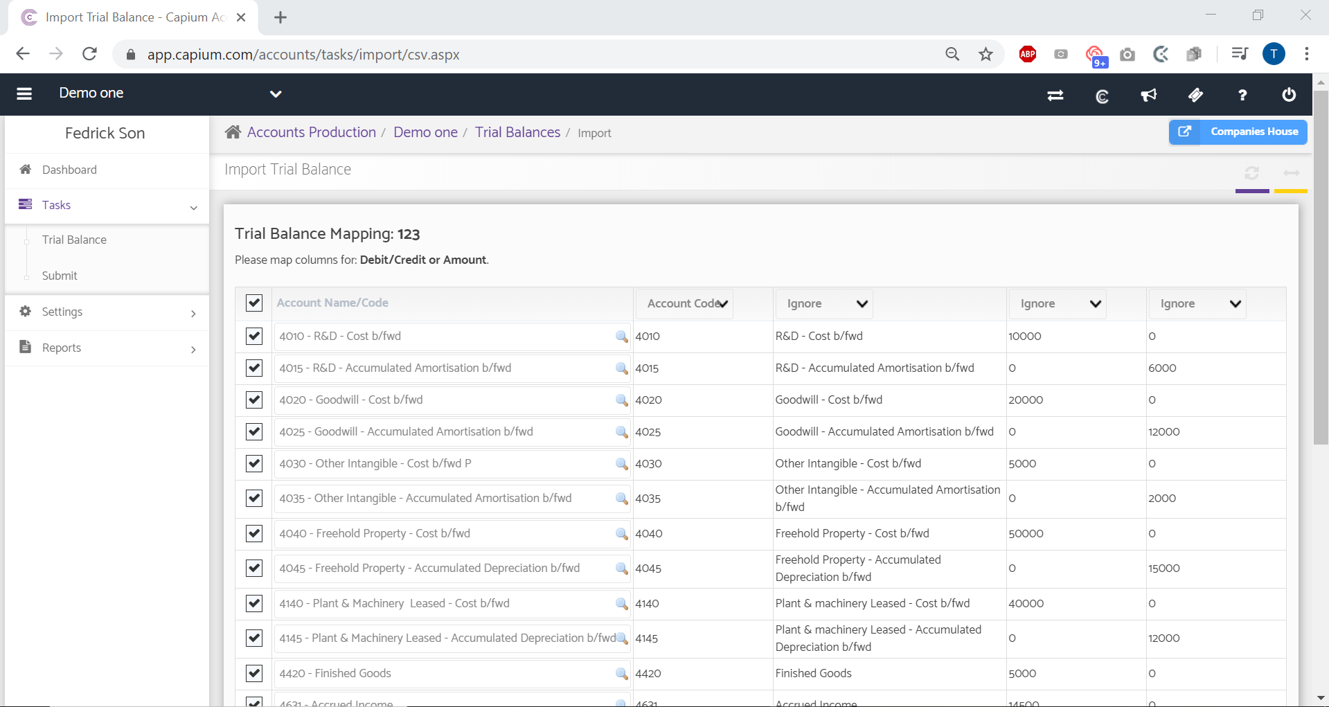The Trial Balance can be imported in CSV format into Capium Accounts Production by following the below navigation.