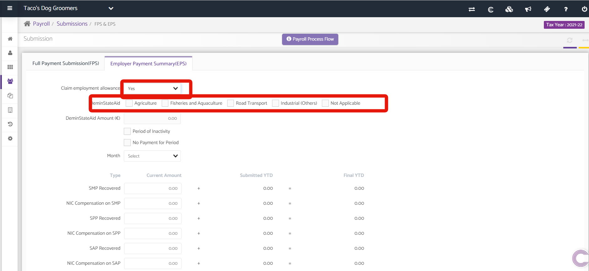 Navigation: Payroll> Submissions> FPS & EPS > Employment Payment Summary
