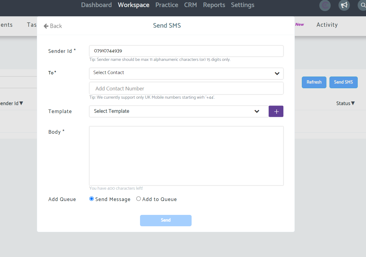 You can send SMS messages to your clients. Please get in contact if you cannot see the SMS access in Capium PM