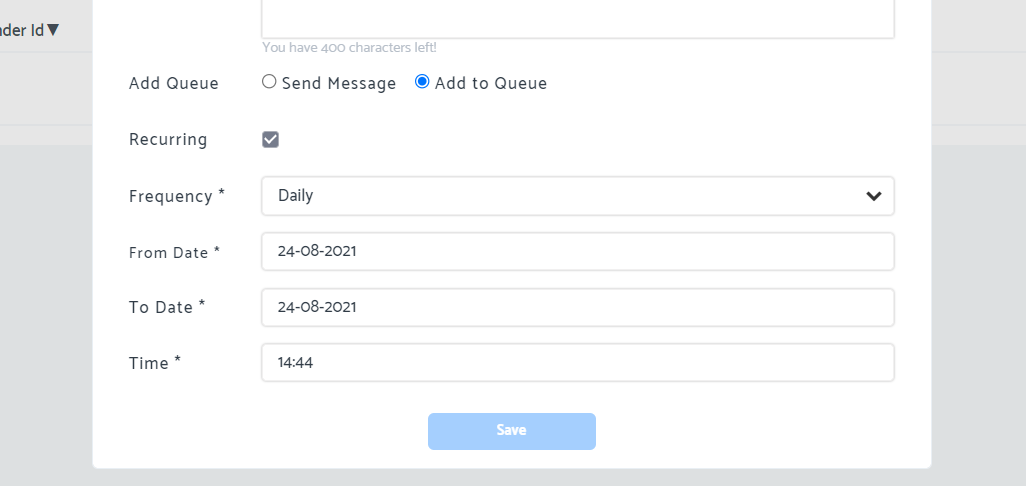 When ready click save. These scheduled SMS will then should in the Scheduled SMS tab.