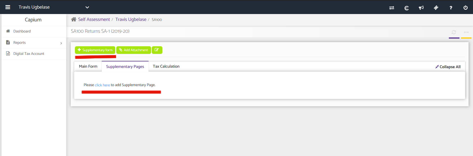 When you've created the return, head to the Supplementary Pages and click the button to add a new supplementary form as shown below;