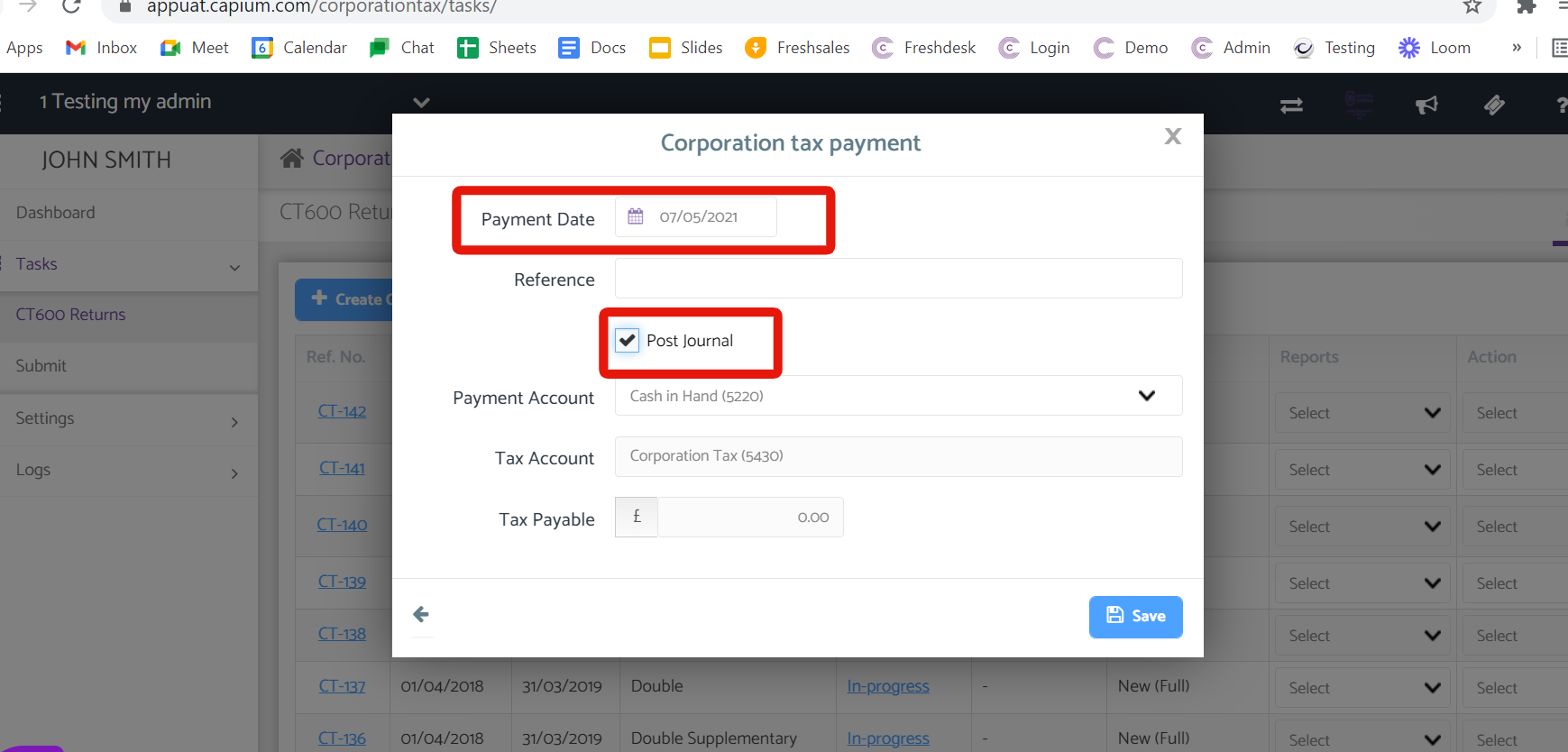 Once in Corporation Tax head to the client and the CT600 return you would like to mark as paid.