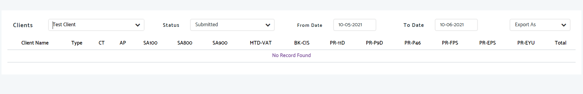 If a client has no submissions the following screen will be shown