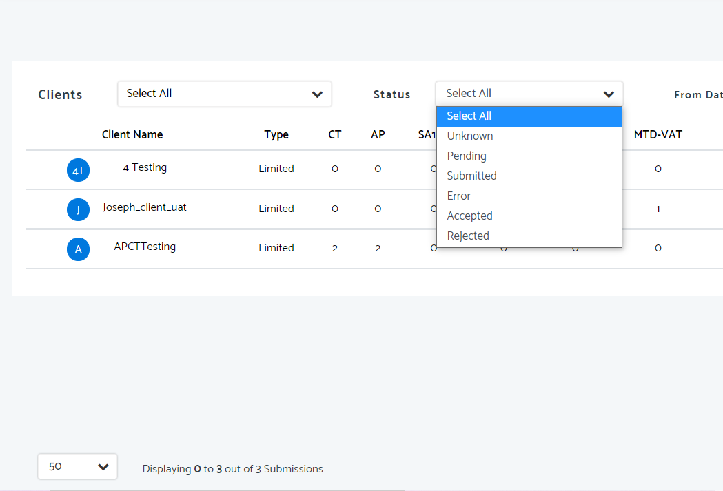 You can also select the type of client (either sole trader/individual/limited/partnership/LLP/trust/charity)
