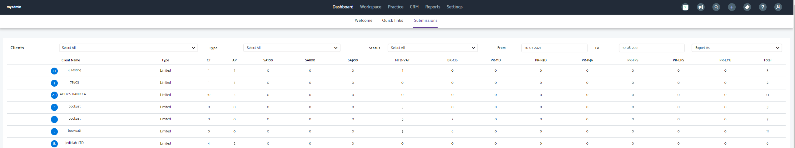 Now when you click onto Practice Management and Dashboard you will see a new tab with the name Submissions.