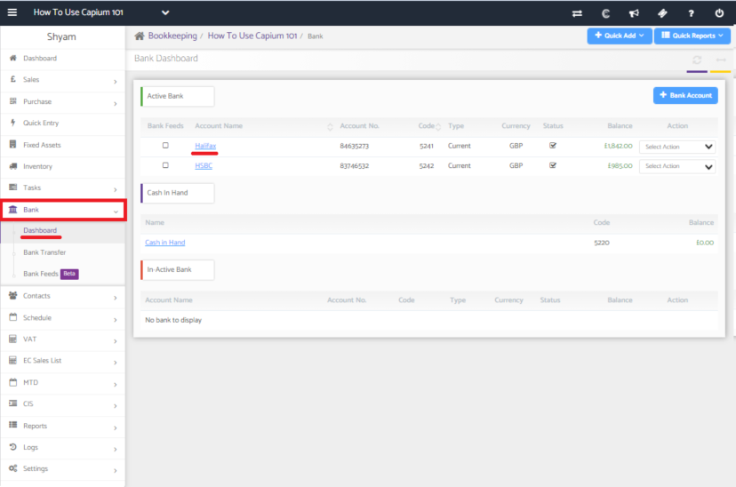 You should see all of the bank accounts you have created.
