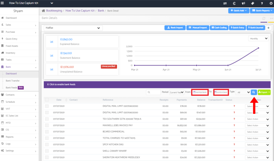 Click on the bank account which has the transaction which needs to be deleted.