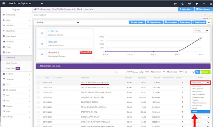 Click here to watch how to delete a bank transaction