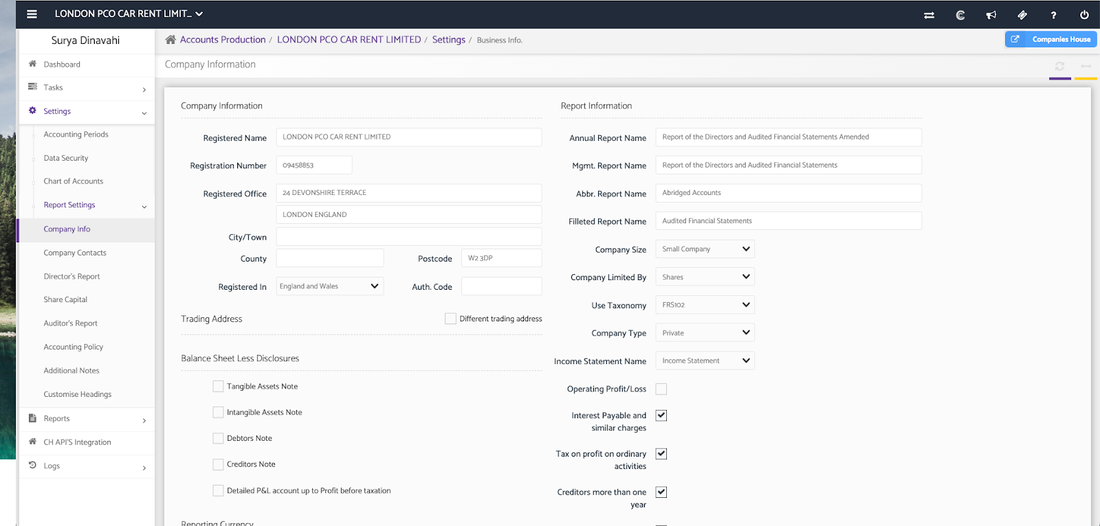 Also, as discussed at the start of the article in the universal general settings, the same applies on a client specific level- You can customise the auditors report, accounting policy, additional notes & directors report.