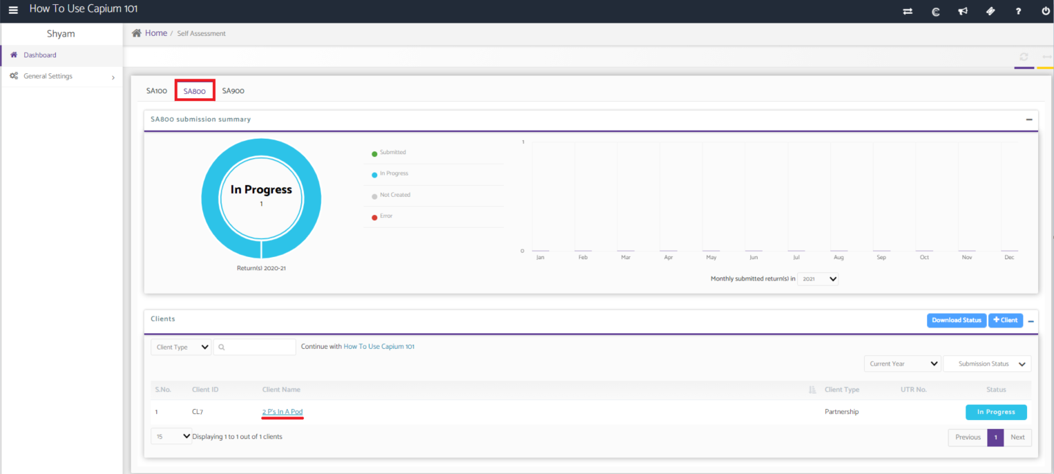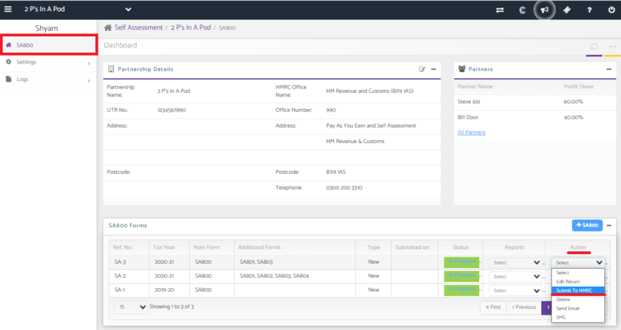To Submit the SA800 to HMRC, go back into the client dashboard.
