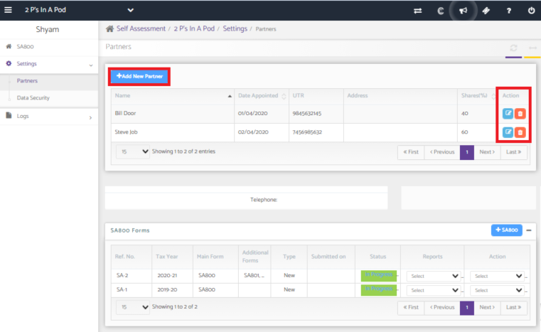 Before creating the partnership return, it is important to create the partners and allocate the shares between them.