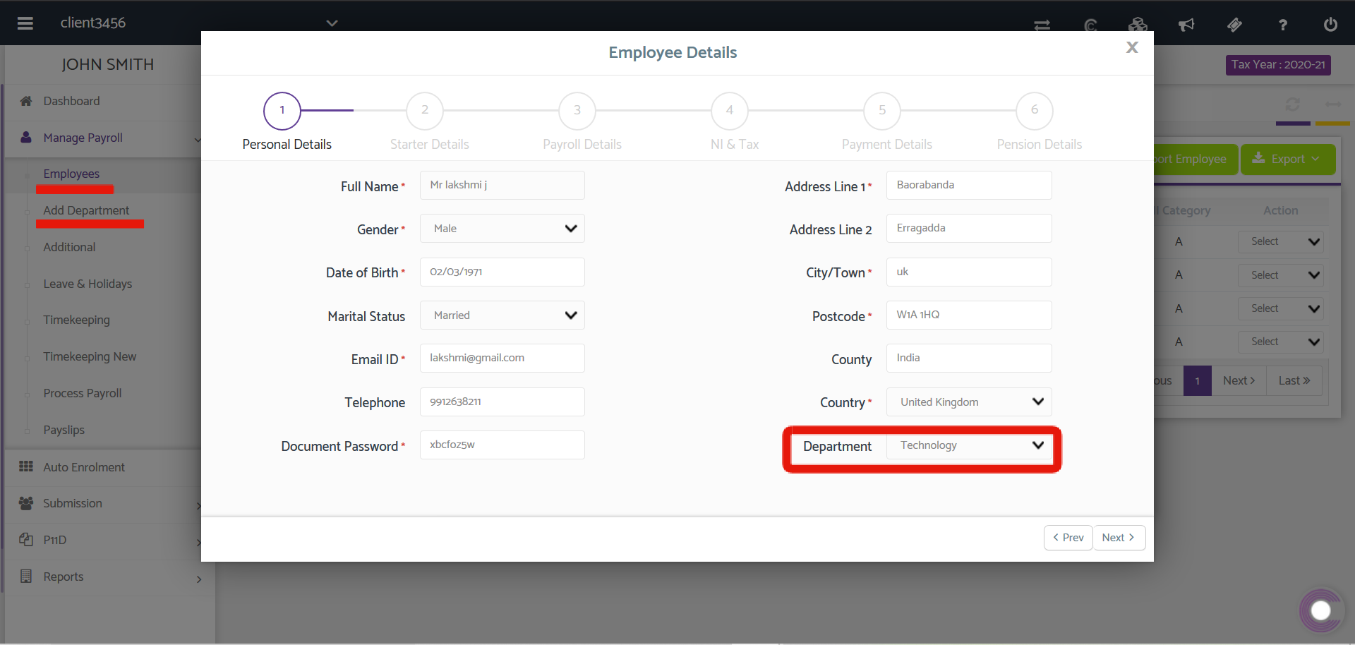 Once you have created the Departments, navigate to Manage Payroll > Employees, use the Action drop-down menu and select Edit. You will then be greeted with the Employee Details interface and on the first page of that interface, use the Departments drop-down menu to assign that particular employee to any of the Departments already created.