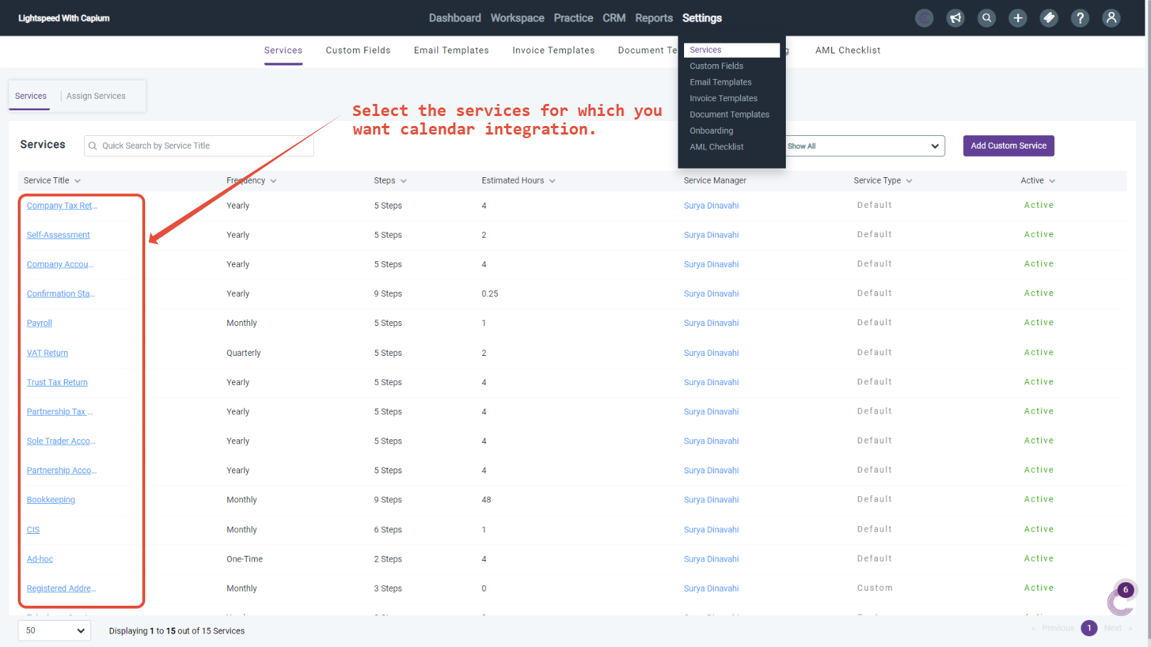 Navigation: Practice Management >> Settings >> Services >> Select a service >> Add to Calendar