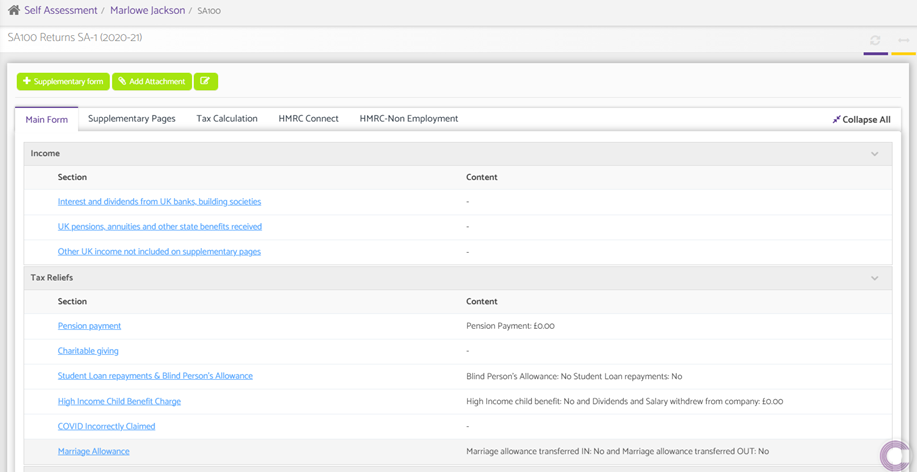 Navigation: Self Assessment > Client > SA100 > Supplementary form