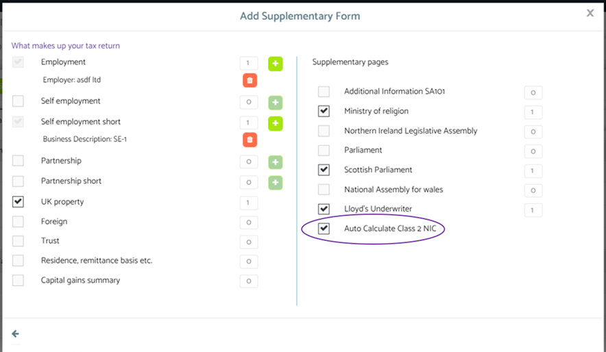 To automate the National insurance contribution within the Self Assessment module, a user is required to tick a box shown above.