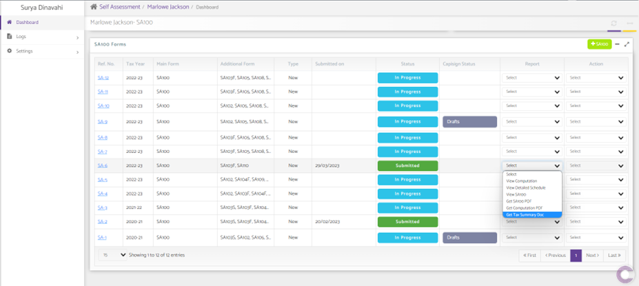Following the navigation process, a user is able to download a summary of the tax-due document.