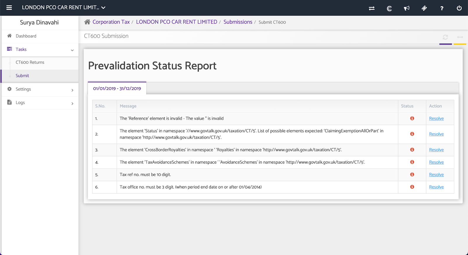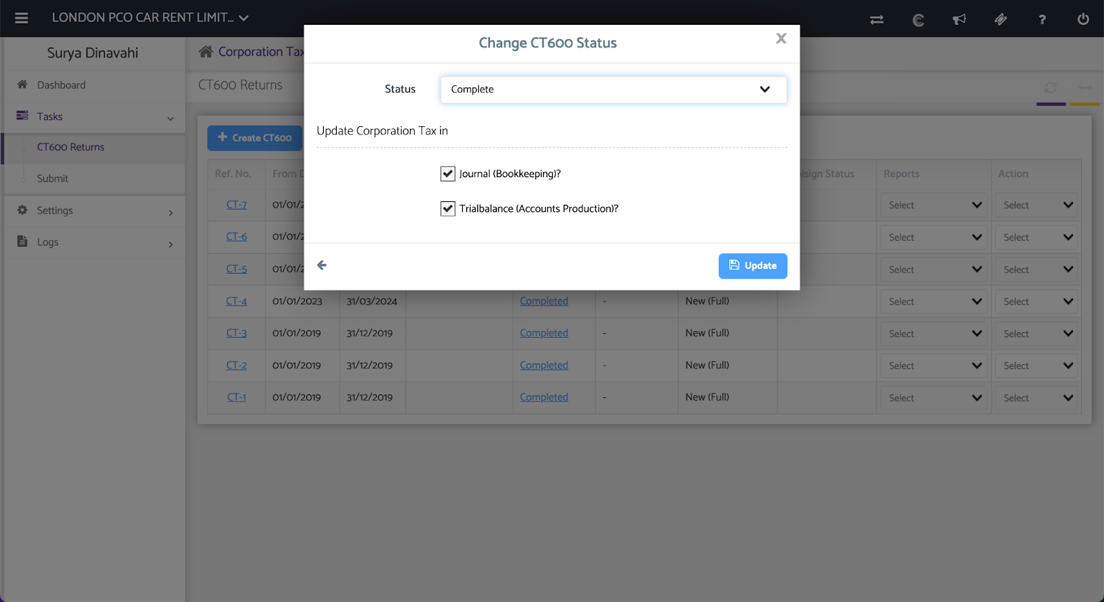 Once finalised, you can submit your CT600 directly to HMRC by navigating to the above tasks and submit CT600.