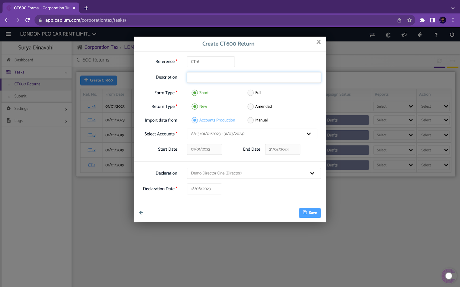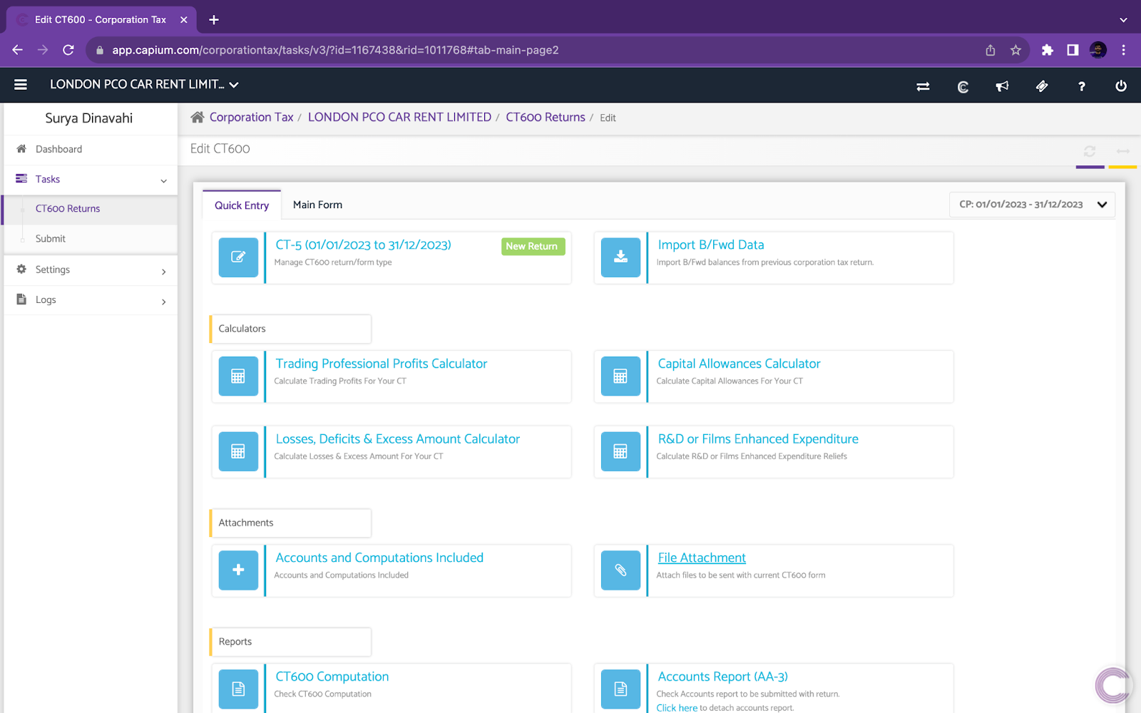 Accounts production: Users are able to attach the accounts directly from the accounts production module. While importing the data some fields within CT600 will be populated automatically.