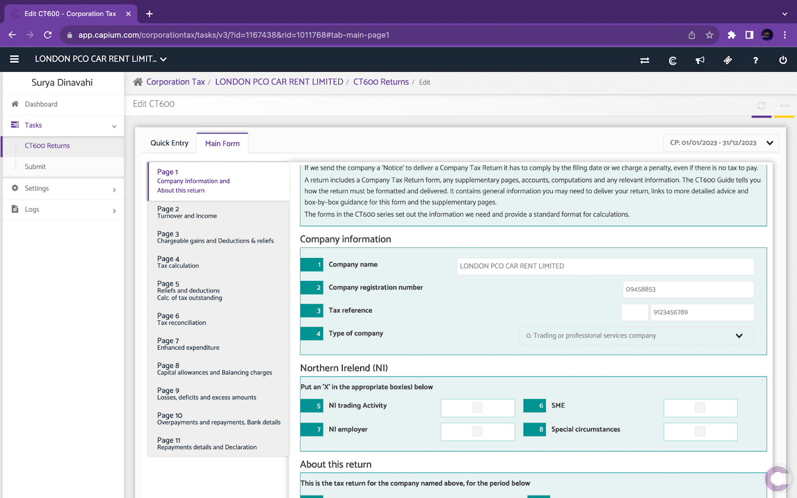 As you can see above there is also an option to edit the main form to add further information to the CT600 returns, even while editing this manually the computations within CT600 are updated automatically.