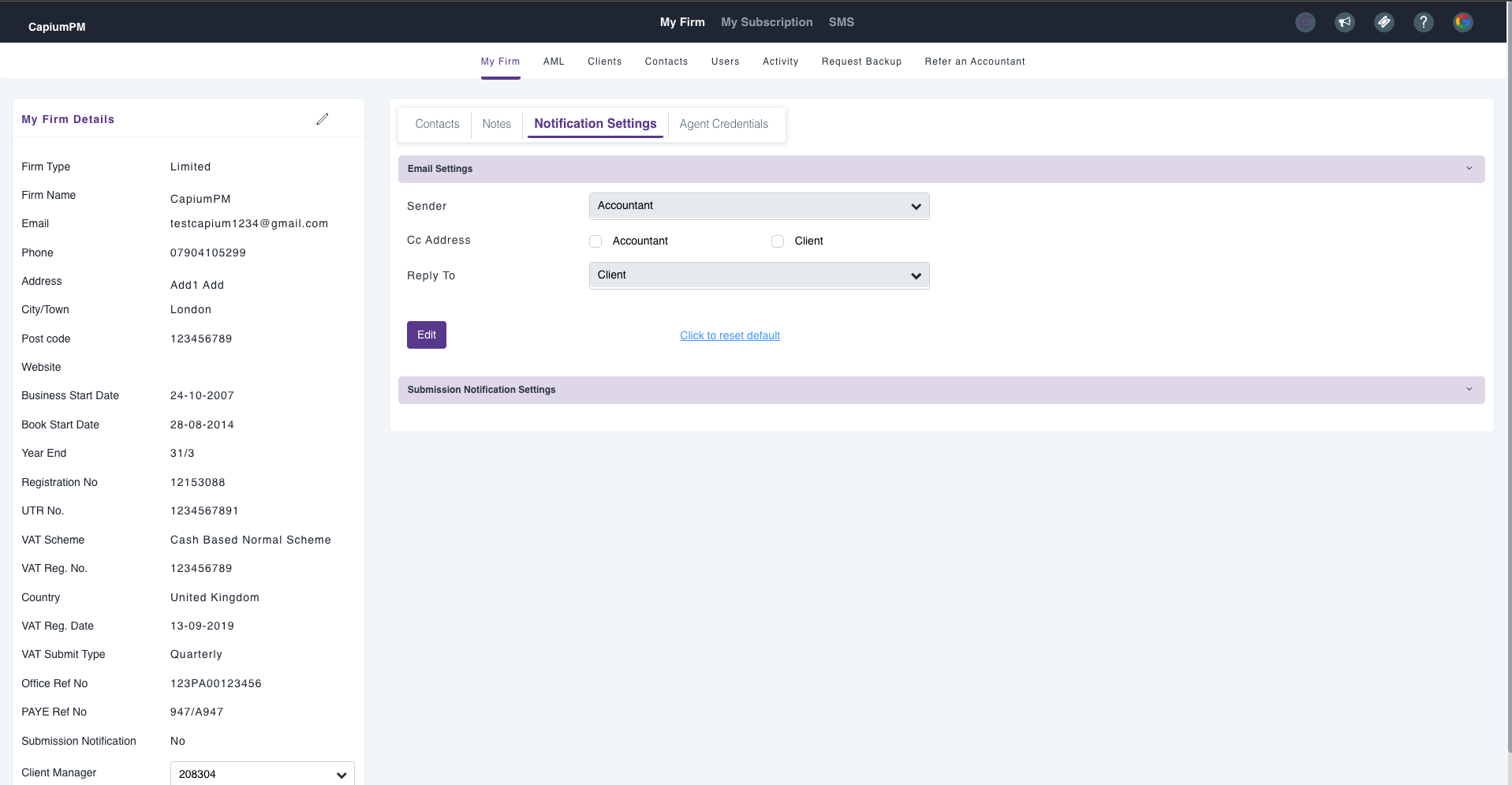 Previously to configure the Submission Notifications you would need to go in the My Firm Details, if you select the Submission Notification checkbox, it will automatically tick the Send Notifications checkbox within the Notification Settings.