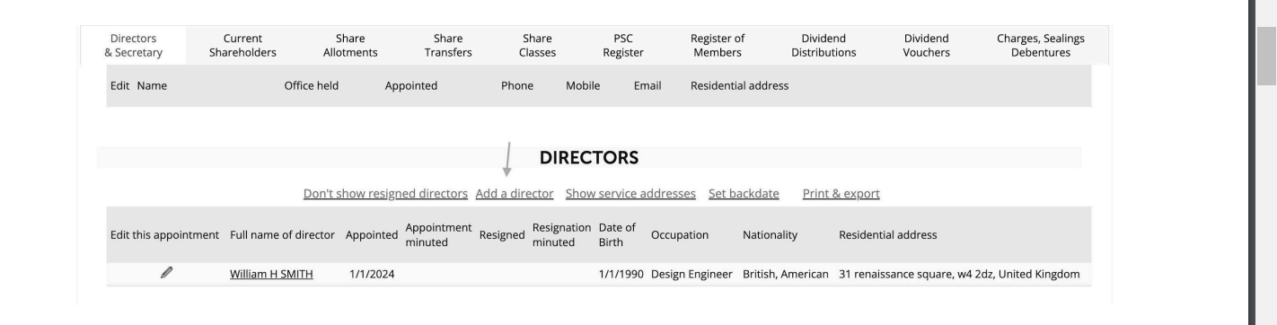 Scroll down to Directors, select Add a director:
