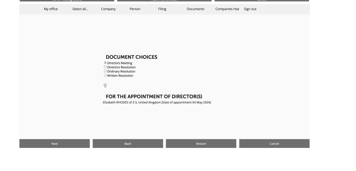 For Director minute, go to Documents > Director > Appoint Director minute: