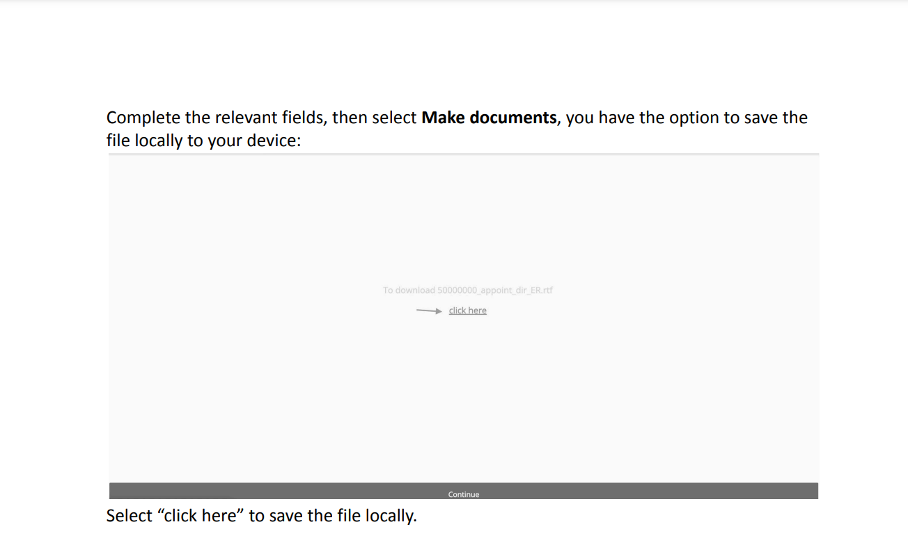 Complete the relevant fields, then select Make documents, you have the option to save the file locally to your device: