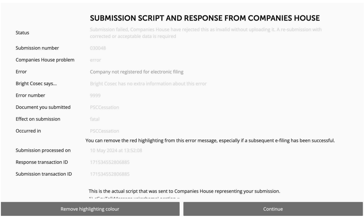 NOTE: These rejection messages are not software generated but come from Companies House, we can try and help you solve them. However, in some cases it may be best to contact Companies House directly on 03031234500, they are very responsive, and will tell you why it's rejected straight away. If there is a problem with a particular field, scroll down and it will highlight in red the line Companies House have a problem with. The content of this document is furnished for informational use only, is subject to change without notice, and should not be construed
