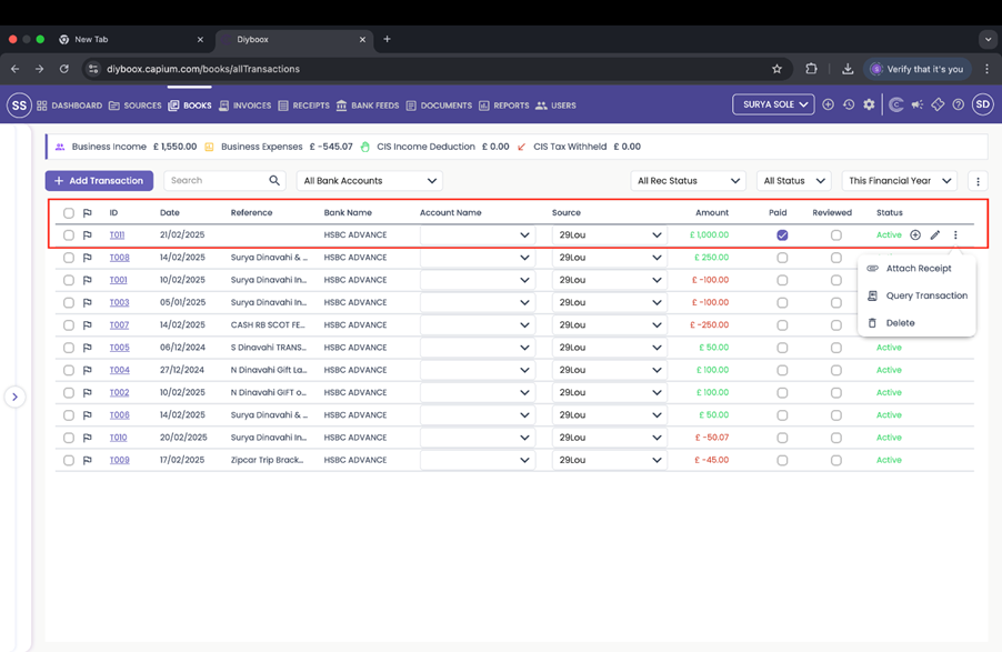 There are several ways where a user can manage the transactions in the books section.
