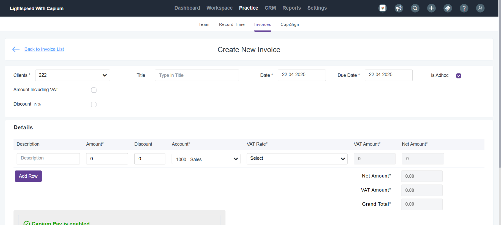 Once in this section, you can press the purple ‘Raise New Invoice’ button. You will then be taken to this page: