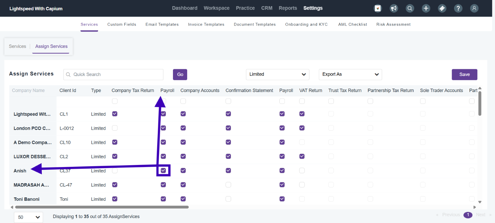 Navigation: Practice Management > Settings > Services > Assign Services