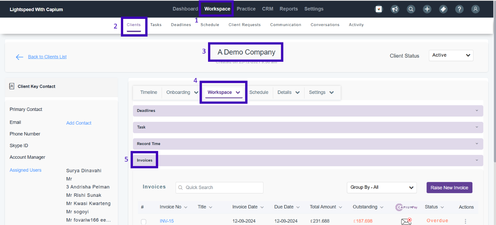 Navigation: Practice Management > Workspace > Clients > [Client Specific] > Workspace > Invoices