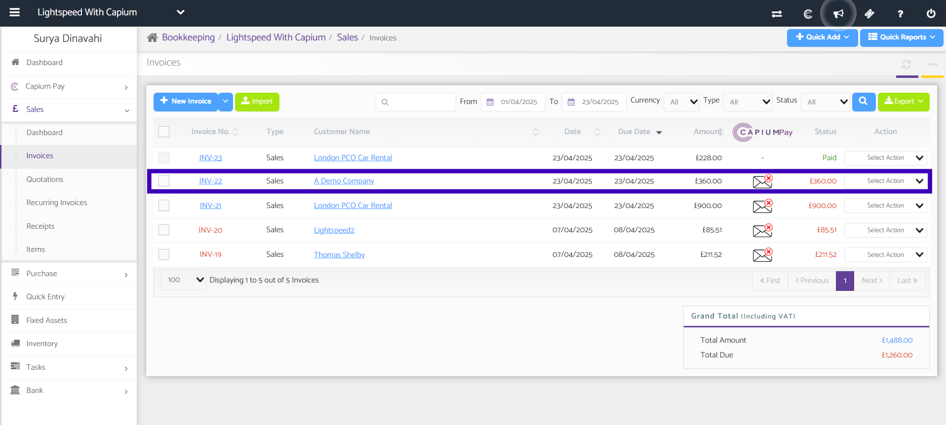To view your raised invoices in your bookkeeping module navigate to the page below.
