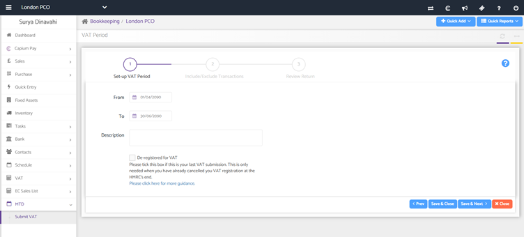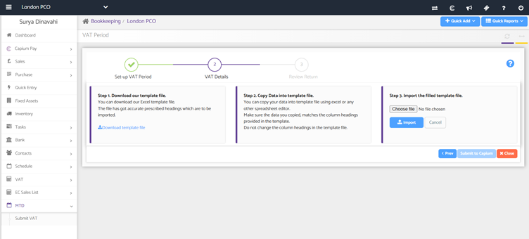 - 'Submit to Capium' - saving the VAT return on Capium allowing you to come back to it at a later date.